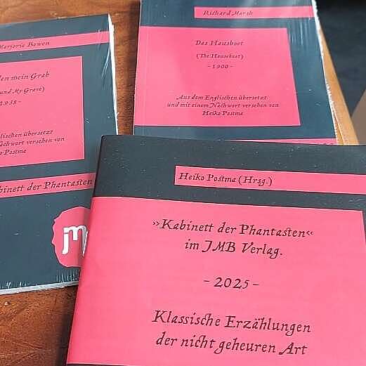 Mit seiner inzwischen 120 Bände umfassenden Reihe „Kabinett der Phantasten“ hat Jens Bolm mit seinem JMB Verlag in Hannover eine beeindruckende editorische Leistung erbracht. Jens Bolm, der neben dem Verlag auch einer Brauereigenossenschaft vorsteht und einem „Brotberuf“ nachgeht, veröffentlicht, was ihm gefällt. Ob Kinderbücher oder Titel von Bloggern und Podcastern – alles findet sich im Verlagsprogramm. Ein echter Hit war beispielsweise der Titel „Chuck-Norris-Fakten“.
